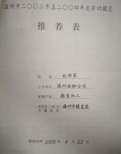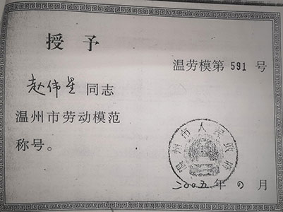 趙偉星于榮獲2005年溫州市勞動模范稱號,2001年、2002年連續(xù)兩年被評為浙江省設(shè)備管理先進個人。